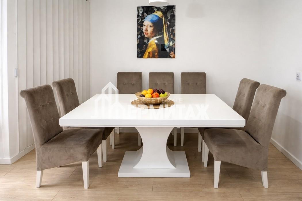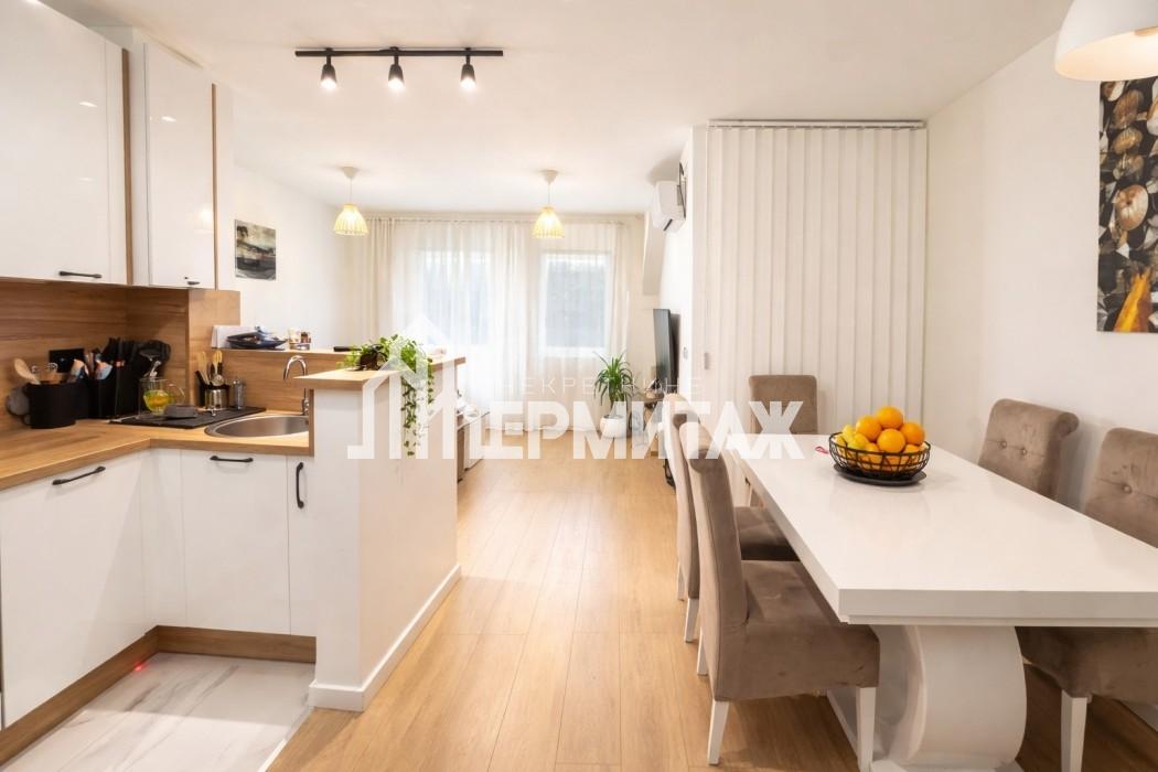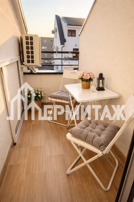 Stan je kompletno opremljen novim i modernim nameštajem i svim potrebnim uređajima. Enterijer je pažljivo uređen, pruža osećaj komfora i prijatne atmosfere.