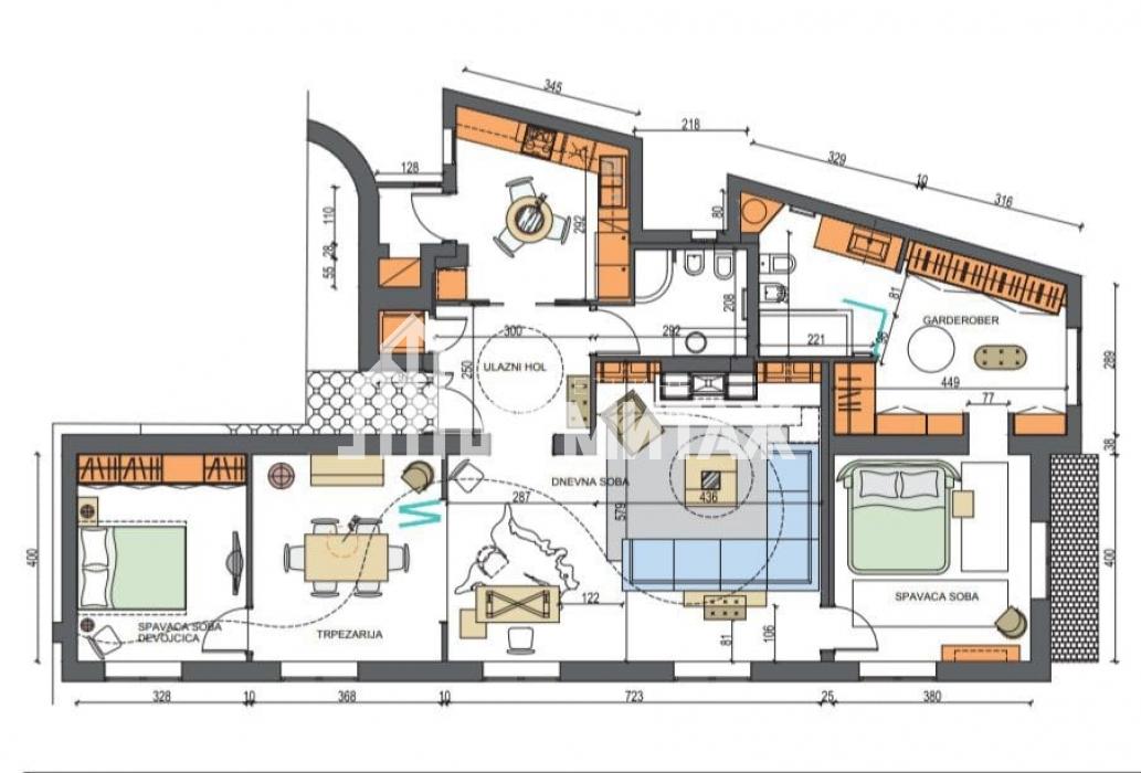 Stan sa svojih 127m2, opremljen savremenim uredjajima i tehnikom, koji odise luksuzom, prestiznoscu, pruza mogucnosti udobnosti i komfora za porodicu ali i za poslovne ljude.