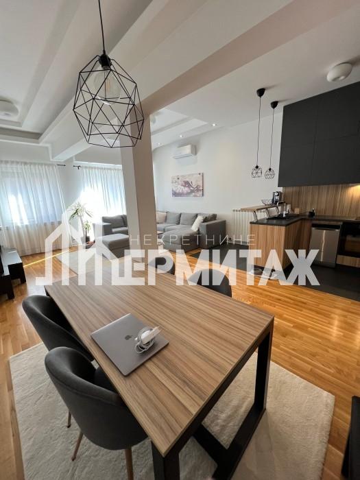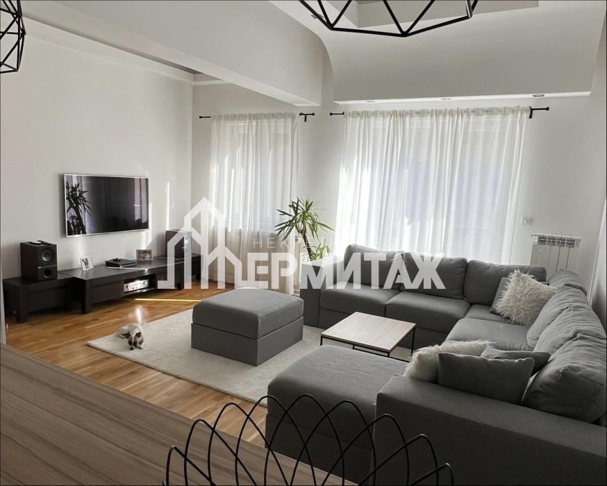 Stan se sastoji iz velikog open concept dnevnog boravka sa kuhinjom i trpezarijom, dve spavaće sobe, treće sobe adaptirane u garderober, kupatila.